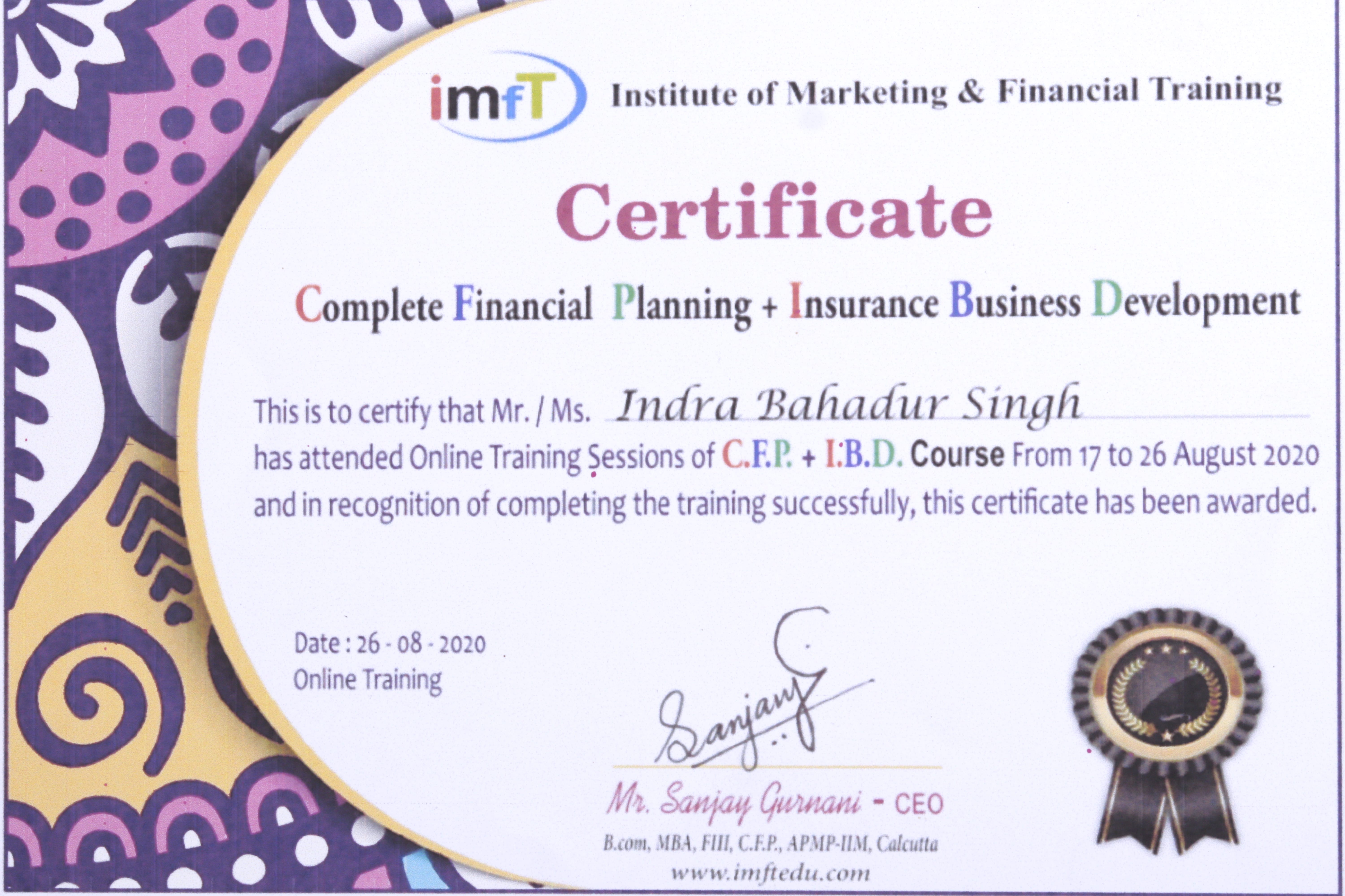 Thank you for visiting our website. I'm IB SINGH Financial Advisor & Financial Planner. I, IB SINGH, welcome you to my website www.indrrasiingh.com. This is a small attempt from my side to provide all my customers, accurate information & services they might require on their fingertips at a time of their convenience. Join LIC in 1988 as an Agent, the Group's activities include Wealth Management (thru Life insurance, Mediclaim, General insurance, FD & Mutual Funds), Home Loans, Superannuation, & other investments while it operates in Mumbai,Thane & Navi Mumbai.